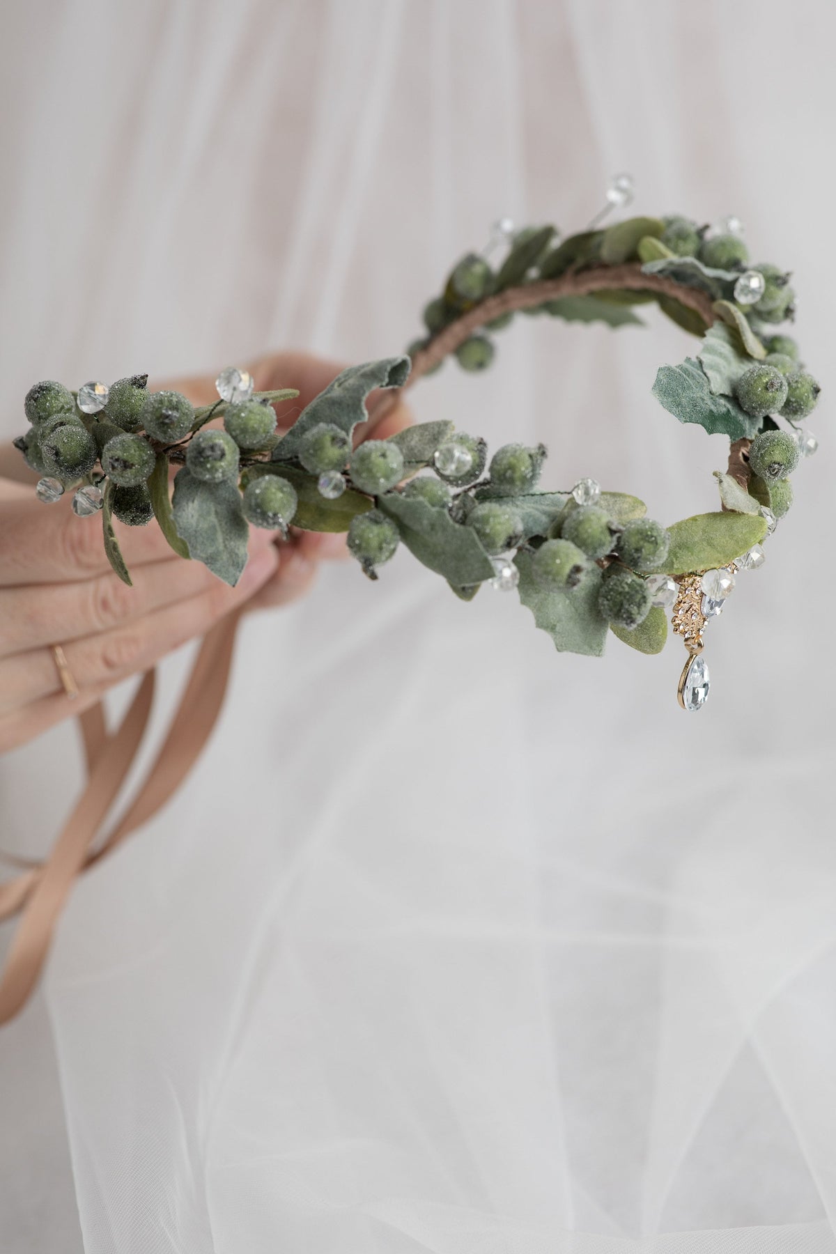 Sage Green Elf Crown — Handmade Woodland Leaf Headpiece