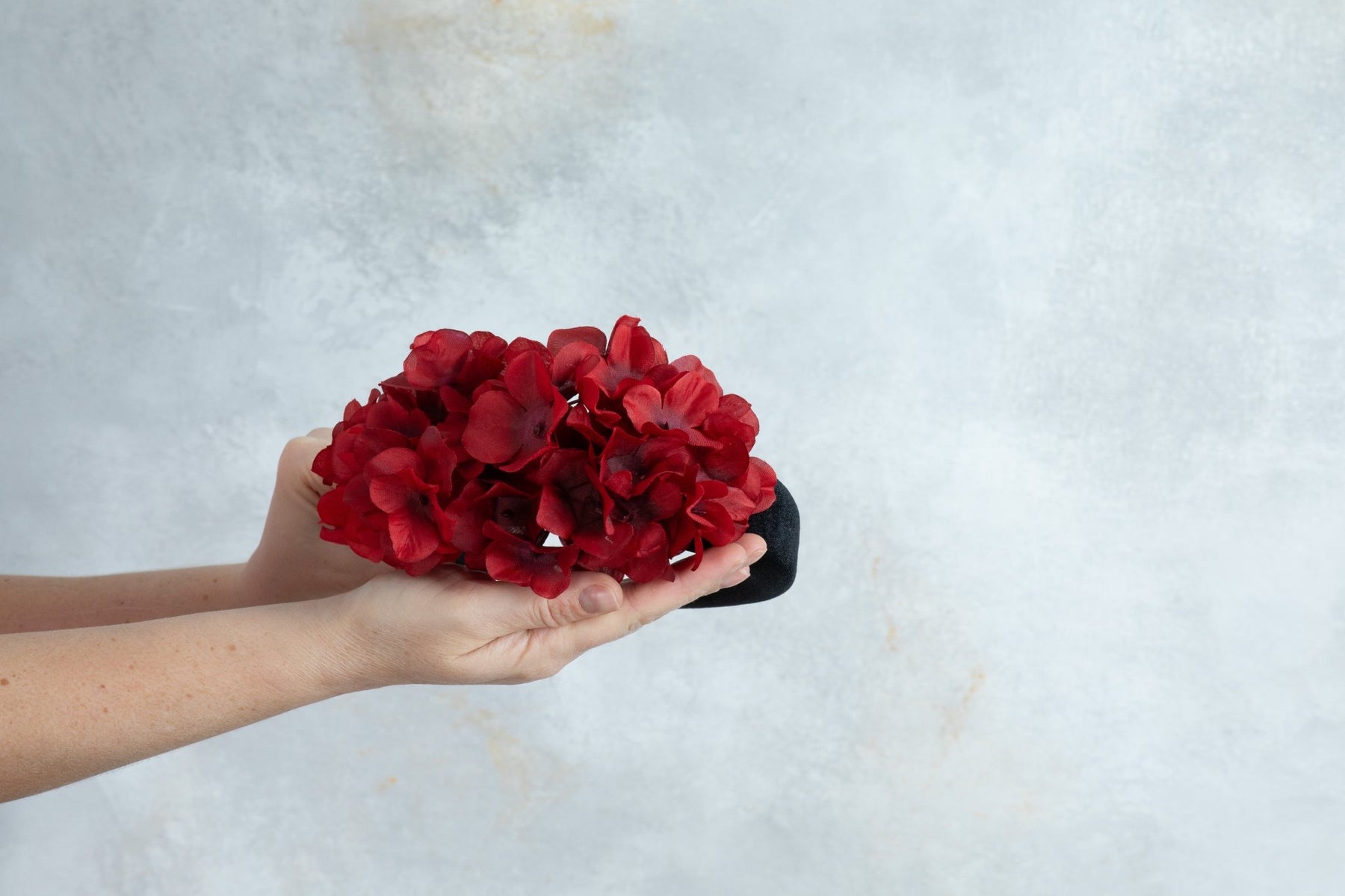 black Padded fascinator and red flowers - OlhaHeadband